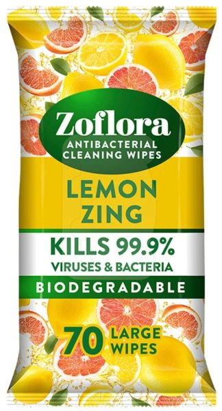 • Zoflora Chusteczki Czyszczące Biodegradowalne Lemon Zing 70szt
